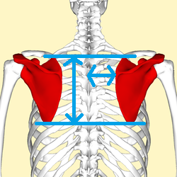이라고 한다. 날개뼈의 과도한 하방회전을 가진 경우 A(견갑골 하각)가 B(견갑골 극근)보다 내측에 위치(척추에 가까워짐)한다. 화살표로 표시해둔 것처럼 A가 내측으로 이동하게 되고, 날개뼈는 아래쪽으로 회전될 것이다.