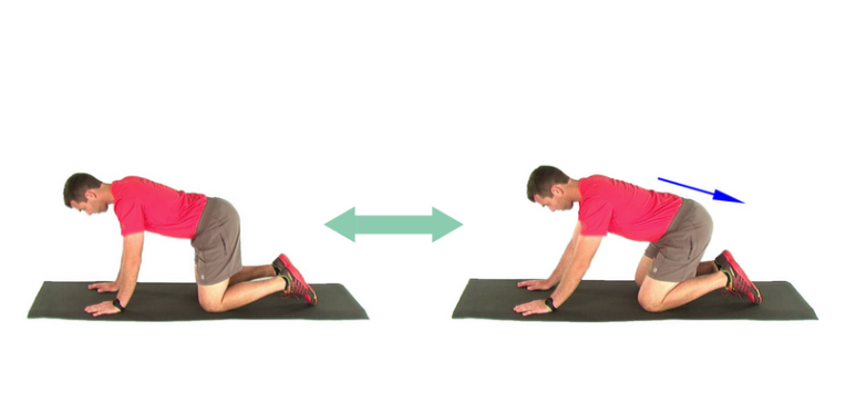 다시 엉덩이를 들고 체중이 전방으로 이동할 때 체중은 전거근에 실리게 되는데, 환자의 전거근 근력에 따라 익상이 일어날 수도 있다. 계속 날개뼈를 주시하면서 날개뼈의 익상이 일어나지 않는 선까지만 동작을 반복한다.