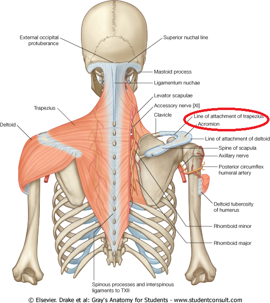 승모근은 쇄골/견봉/견갑극, 즉 AC관절 주변부에 부착되기 때문에 승모근 본인도 트리거포인트가 생기고, AC관절에도 계속 균열을 만들어낸다.
