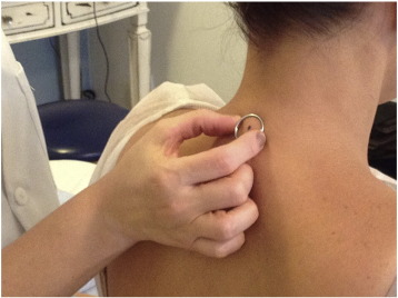 팔을 들어올리는 동안 시험자가 날개뼈를 보조하여 상승시켜주면 어깨 통증이 줄어들거나 사라지는 것을 발견할 수 있다.