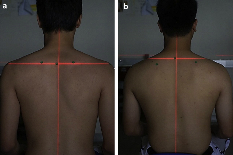b. 안정시 쇄골이 일자 혹은 외측이 내측보다 더 아래에 있을 때