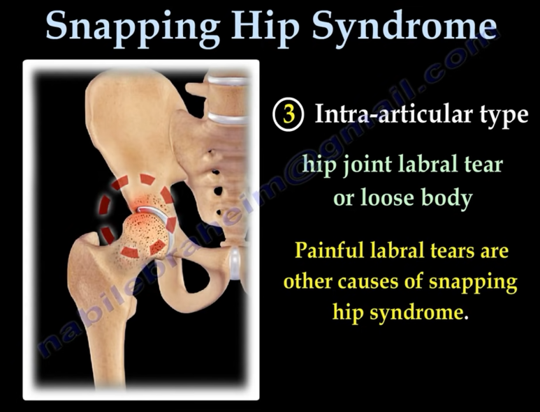 ⑤ 대퇴외측활주 → 고관절 통증 및 고관절 소리, 튕김, 아탈구