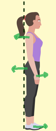 그렇게 되면 우측의 sway back처럼, 마치 걷는 것처럼 직립 자세에서조차 고관절이 신전되고, 날개뼈는 전방 경사진다. 고관절이 신전하며 뒤로 바닥을 밀었기 때문에 반작용으로 당연히 골반은 전방으로 튀어나간다.