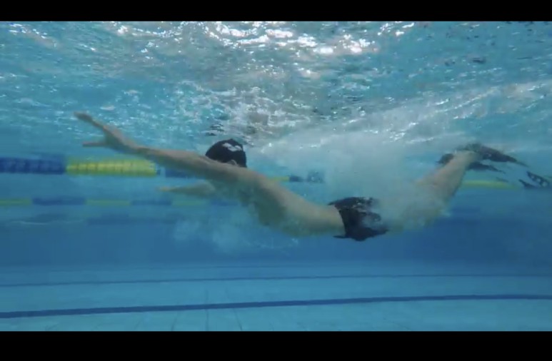 자유형 킥이나 돌핀킥을 찰 때 달리기처럼 신전하는 힘을 쓰면, 발은 우리 몸의 뒤(하늘 방향 ↑)로 차지면서 몸은 물 속으로 곤두박질치게 된다. 때문에 수영을 할 때는 달리기의 리커버리처럼 고관절을 굴곡하면서, 즉 물을 아래로 누르면서 킥을 차야한다. 그래야 그 반작용으로 내 몸이 계속 둥둥 떠 있을 수 있다.