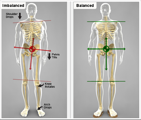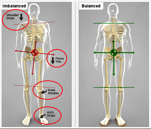 만약 중둔근의 약화나 기능 부전, 근길이의 감소 등이 있다면 다음 걸음으로 옮길 때 골반의 평형이 유지되지 못할 것이고 → 이는 대퇴골의 내회전, 발바닥의 엎침 등을 유발하여 그 결과로 허리 과신전, 척추 측만, 무릎 내측 통증, 평발 등이 나타날 수 있습니다.