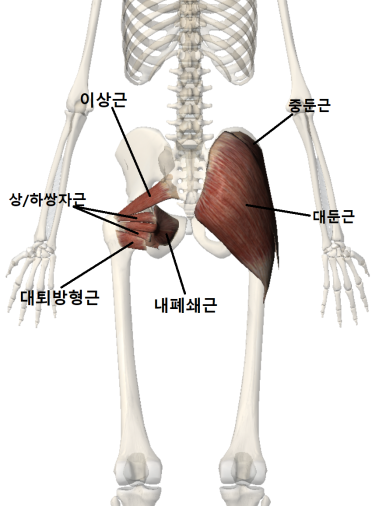 ▶ 척추의 곡선이 무너지면 → 허벅지 외측, 외측 광근과 근막장근에 힘이 들어오게 된다.