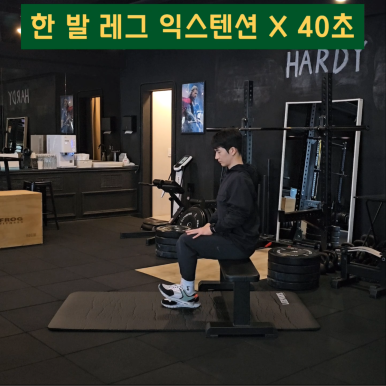 ▶ 따라서 허리가 굽지 않도록 주의하며 40초간 기다려준다.