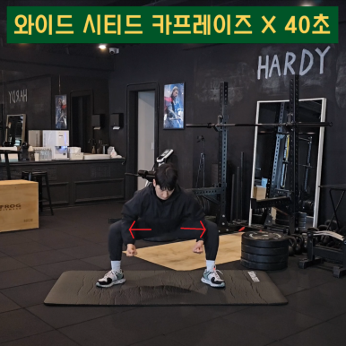 ▶ 내전근과 종아리의 수축감을 느끼며 40초간 기다려준다.