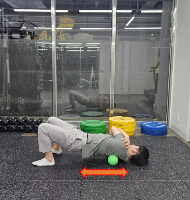 먼저 경직된 날개뼈 하방 회전 근육군을 마사지/스트레치 할 수 있는 방법에 대해 소개하겠습니다.